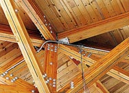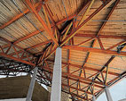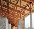 The exposed Glulam trusses and laminated roof deck