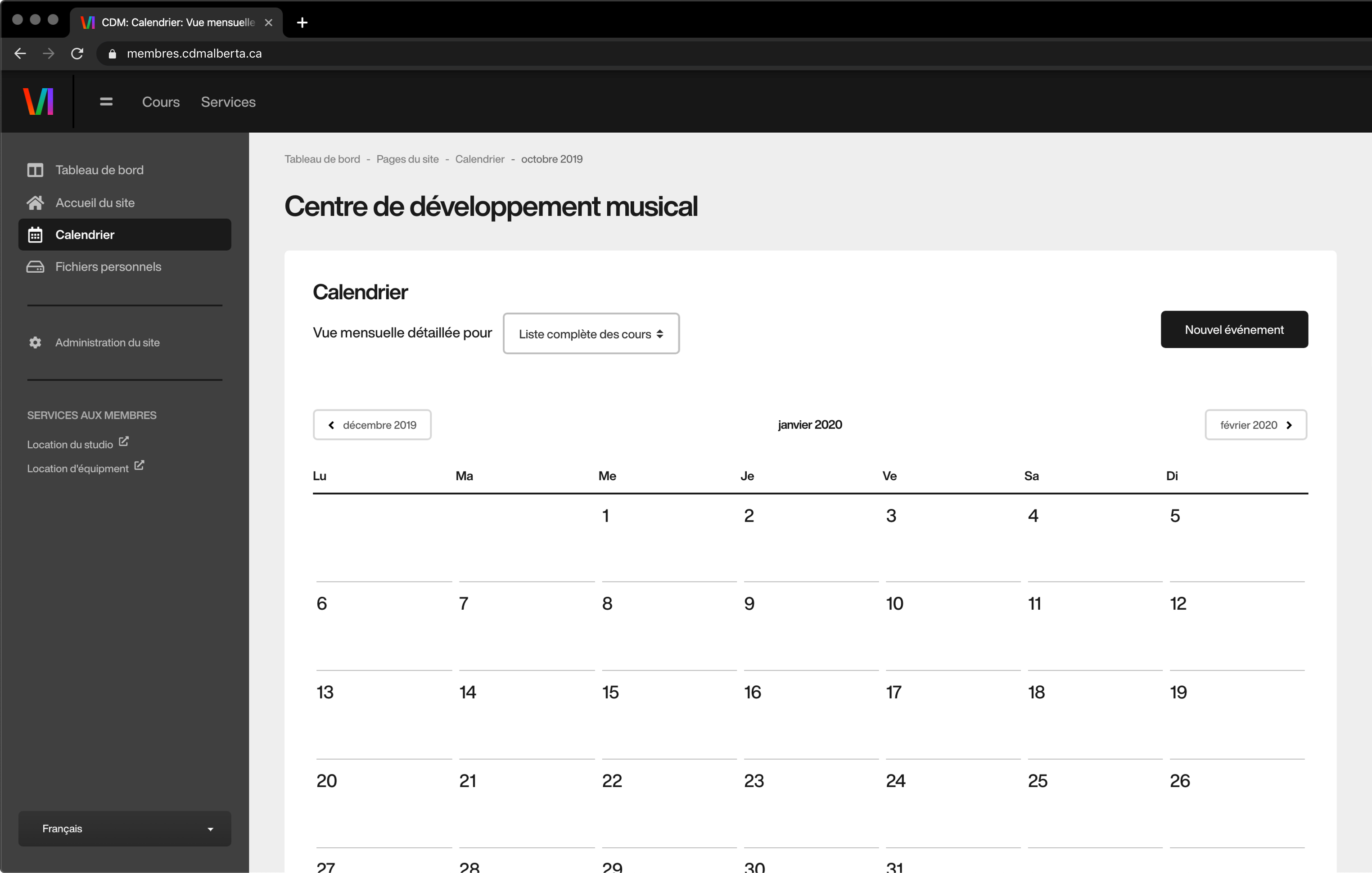 Cours, équipement, studio, programmation d’évènements, tout hors ligne.