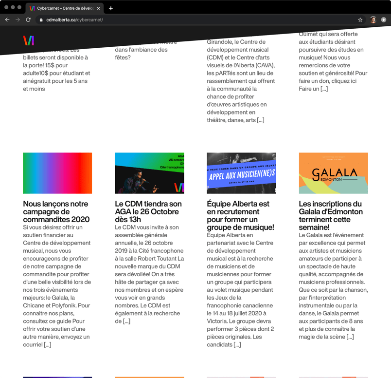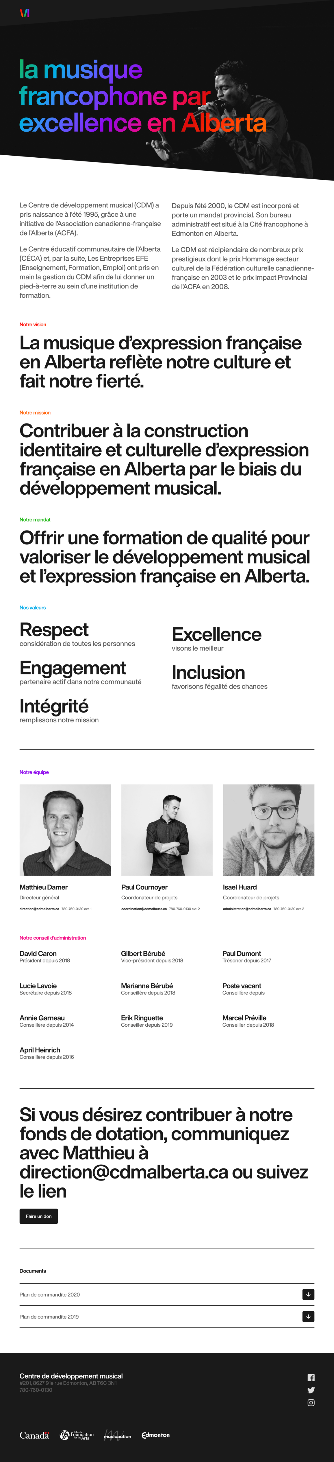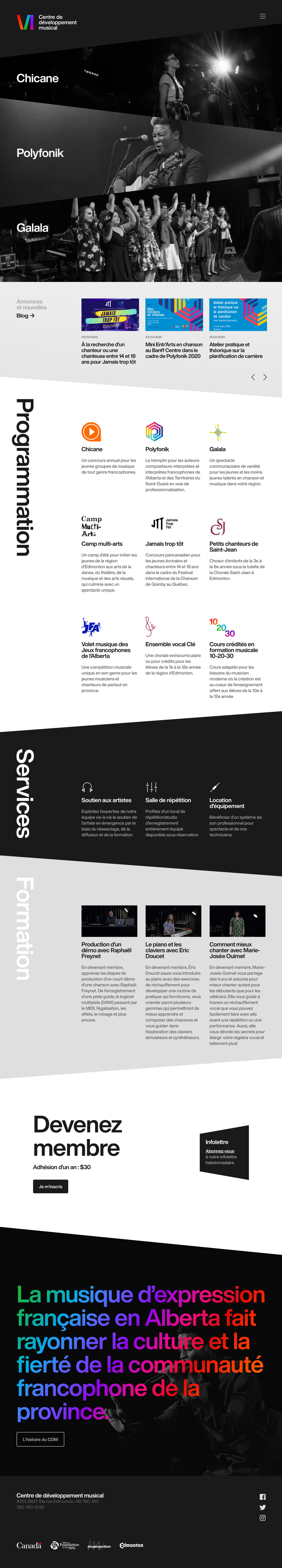 The CDM offers musical education and promotes musical creation in French in Alberta.